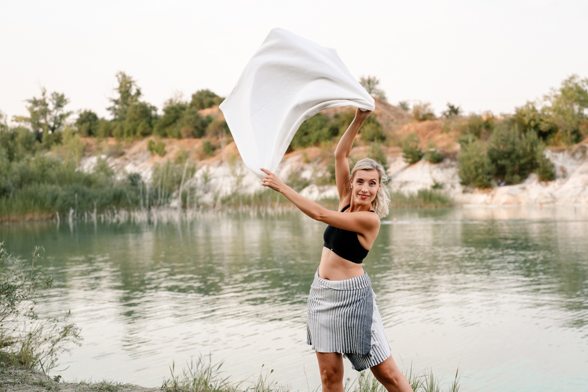 Po delším vybírání místa jsme se se Sabčou shodly na Kaolince v Únanově. Na první pohled jsem se trošku lekla, protože místo bylo plné lidí, kteří si užívali krásný den u vody. Nakonec jsme ale našli úsek, kde jsme mohli nerušeně fotit.